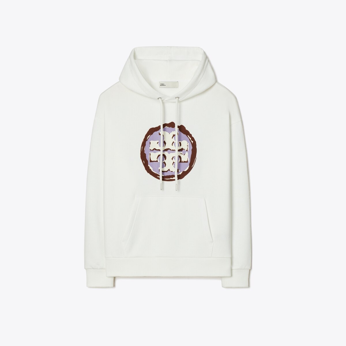 リラックス感のある、暖かなフード付きスウェットシャツ。ソフトコットンを使用し、フロントにカンガルーポケットを施しました。アーティスティックにアップデートした、ダブルTロゴのスクリーンプリントをあしらっています。