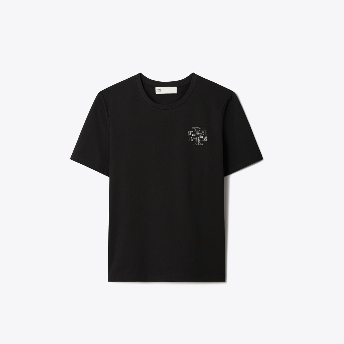ピュアコットンを使用したクラシックなTシャツ。胸のダブルTロゴにクリスタル装飾を施しました。