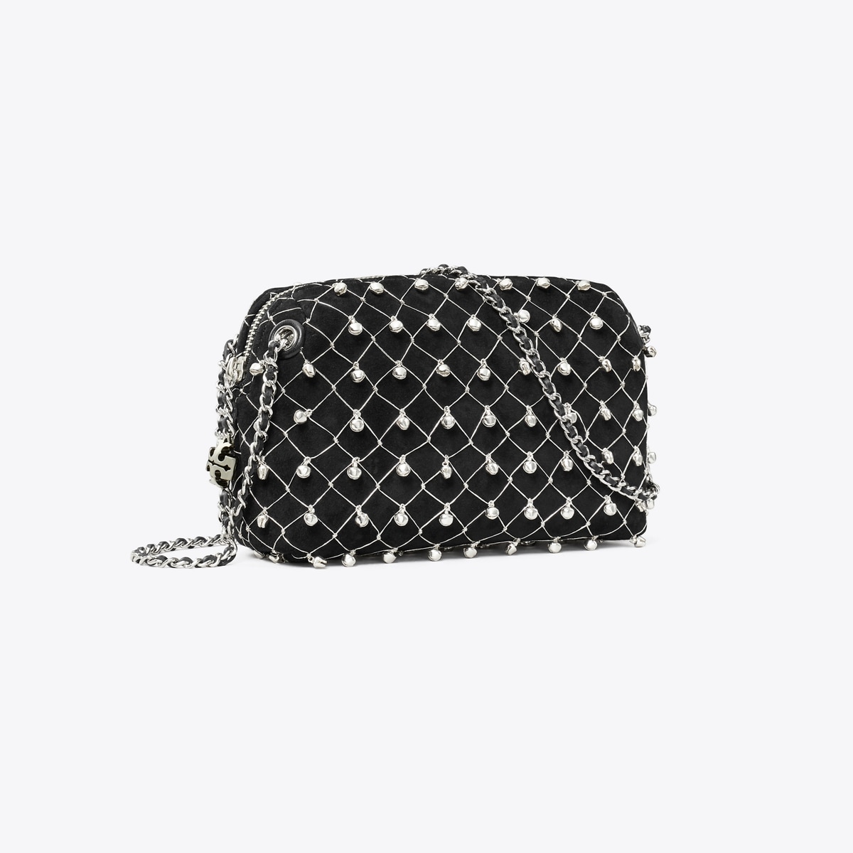タイムレスな魅力を放つ、フレミング ソフト ベル クロスボディバッグ。卓越したクラフツマンシップとさりげない音の遊びが彩りを添える、ホリデーシーズンのパーティに最適なバッグです。チェーンストラップとレザーレースをあしらい、シルバーのネットで覆ったコンパクトなシルエット。小さなメタルベルは手作業で飾りつけられています。