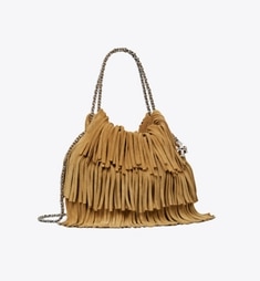 - チェーンとレザーのダブルハンドル(ハンドルの高さ18cm)、チェーンとレザーのクロスボディストラップ(ストラップドロップ56.5cm)、チャーム付きスワッグチェーン