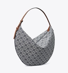 シグネチャーのモチーフ。時代を超えて支持される素晴らしいスタイルを反映したコレクションです。ソフトなスエードにデボス加工のパターンをあしらった、Tモノグラム ショルダーバッグ。カーブしたシルエットが流動性と動きを表現。スエード風の裏地とファスナー付き内ポケットをあしらっています。あらゆるディテールにこだわり、機能性と汎用性を追求しました。