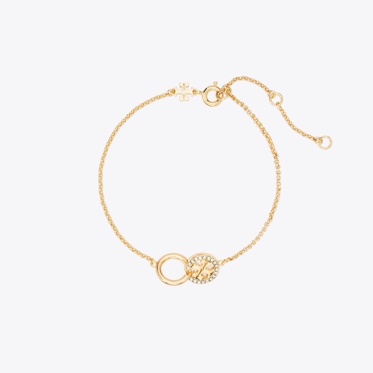 アイコニックなダブルTモチーフにインスパイアされたジュエリーコレクション。シンメトリーが描く力強さと美しさ、そしてタイムレスなスタイルの融合。メタルとパヴェクリスタルを組み合わせたリンクが特徴のICON(アイコン)パヴェ インターロッキング チェーン ブレスレット。他のブレスレットやウォッチとの重ね着けでも、単体で着用したクラシックなスタイルでも映えます。