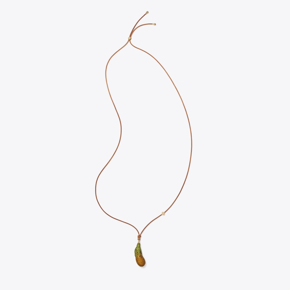 思いがけない魅力と遊び心あふれるジュエリー。幸運のシンボルや動物、身近な物が新たな特徴を帯びるコレクション。CURIOSITY(キュリオシティ)エッグプラント ペンダントは、高度な電鋳技術を使用して作られた超軽量アクセサリーです。パヴェクリスタルを手作業で取り付け、調節可能なレザーコードで留めた、遊び心あふれるチャーム。