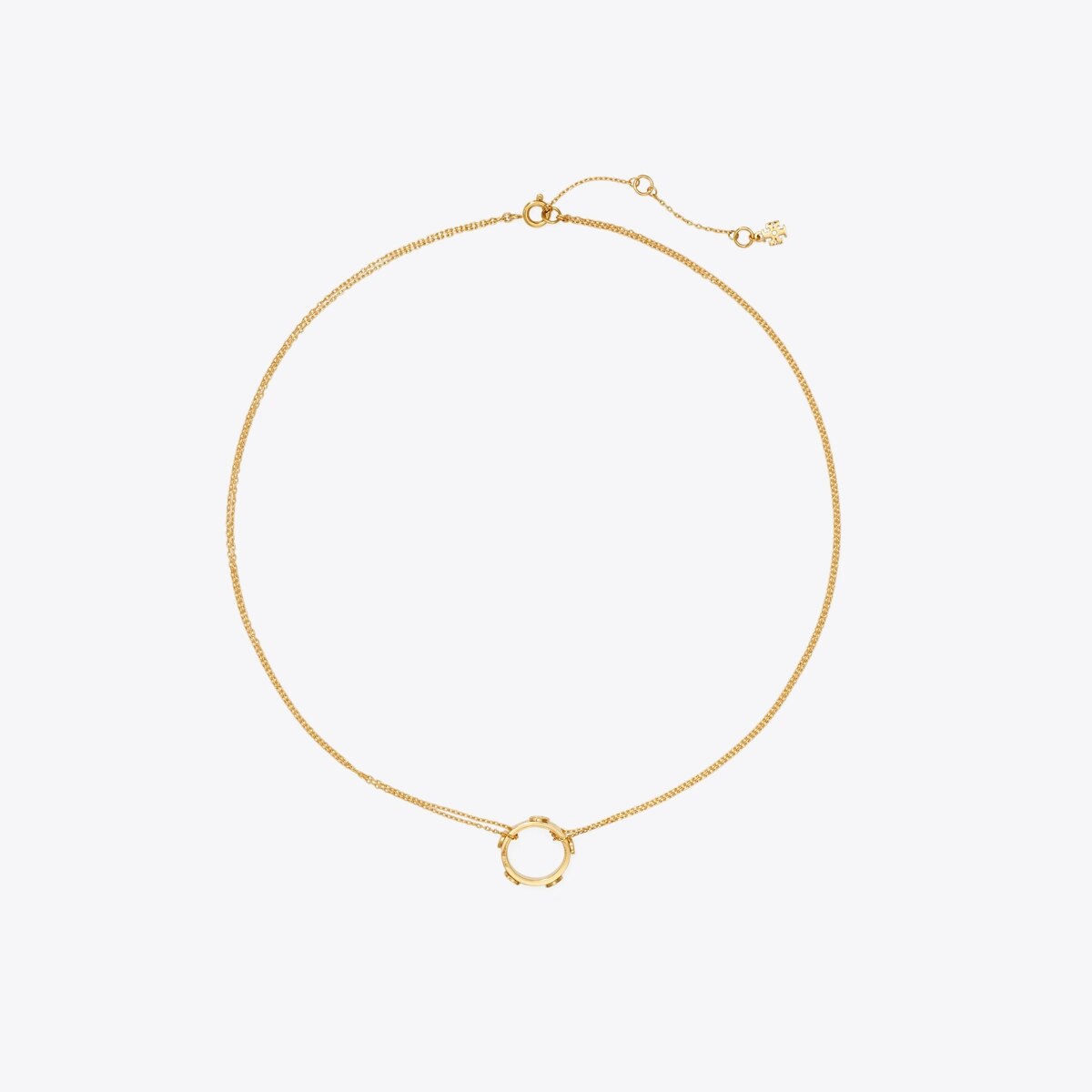 アイコニックなダブルTモチーフにインスパイアされたジュエリーコレクション。シンメトリーが描く力強さと美しさ、そしてタイムレスなスタイルの融合。ICON(アイコン)スタッズ サークルペンダントは、単独で、または長めのネックレスと組み合わせてお楽しみいただけます。