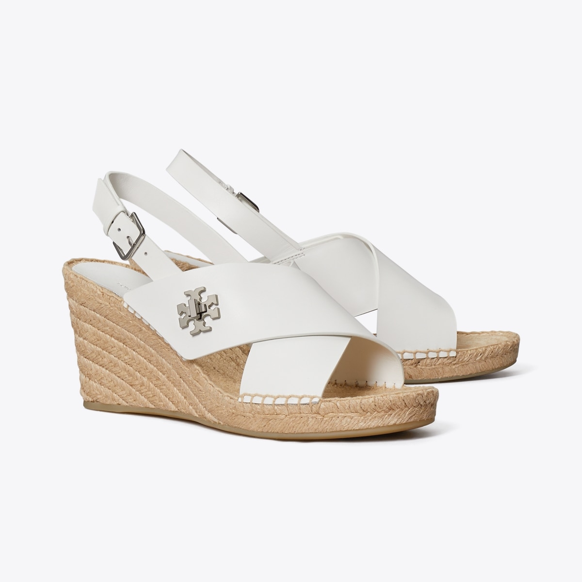 70年代のスタイルを思わせる暖かい季節の定番。ジュートのウェッジヒールにクロスオーバーレザーストラップ、装飾的なターンロックのメタルパーツが特徴のターンロック ウェッジ エスパドリーユ。軽やかなサマードレスやワイドレッグデニムと相性抜群。