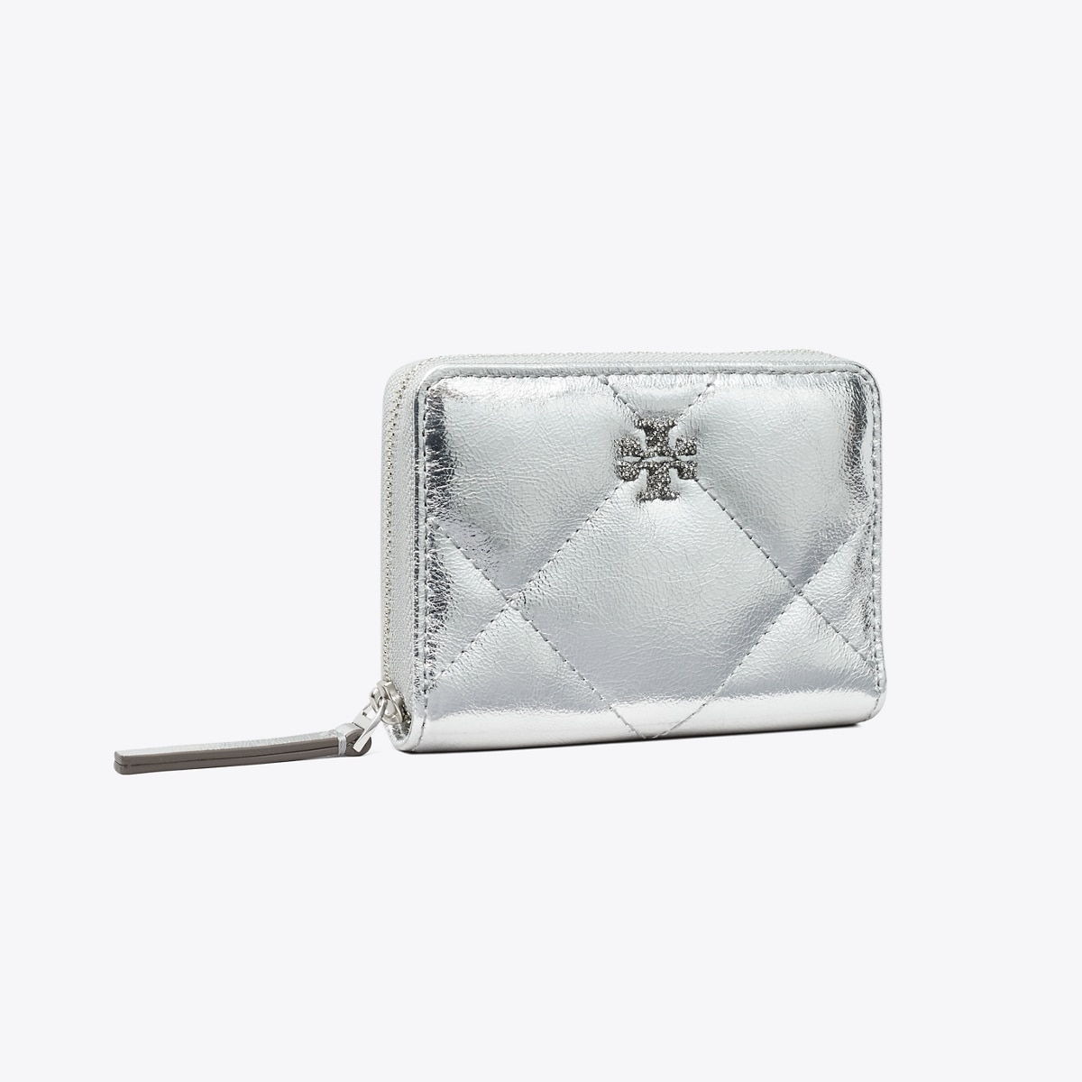 やみつきになる、ふんわりやさしいダイヤモンドステッチのイタリアンソフトレザー。ピローを思わせるフォルムに、クリスタルパヴェがきらめくダブルT金具をあしらいました。キラ ダイヤモンドキルト メタリック ジップアラウンド スモール ウォレットは、コインポケットなどのコンパートメントが多彩で、ミニバッグの中にも入れられる小さめのサイズが魅力です。